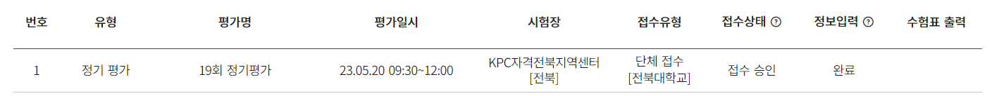 학교에서 보증금을 받고 단체 접수 시험비를 지원해줬었다.(보증금은 시험 보면 돌려줌)