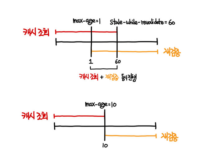 첫번째는 max-age + SWR(Stale-While-Revalidate) 을 시각화한 것이고,