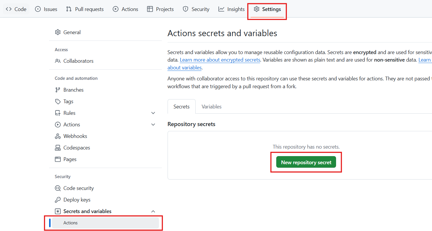 Github Actions 변수 추가하기